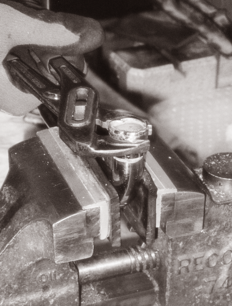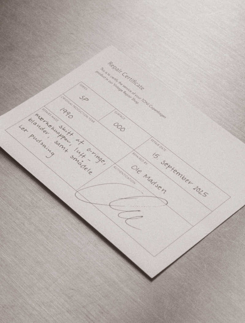 Selvom armaturet stadig fungerede, trængte det alligevel til en lille restaurering, og blev derfor sendt til vores Vintage Repair Shop på Frederiksberg C for en nænsom opfriskning. Her tog Ole, som har arbejdet på værkstedet i 43 år, sig af restaureringen. Et par nye pakninger, en ny tud og en let pudsning, og så var det klar til brug igen.