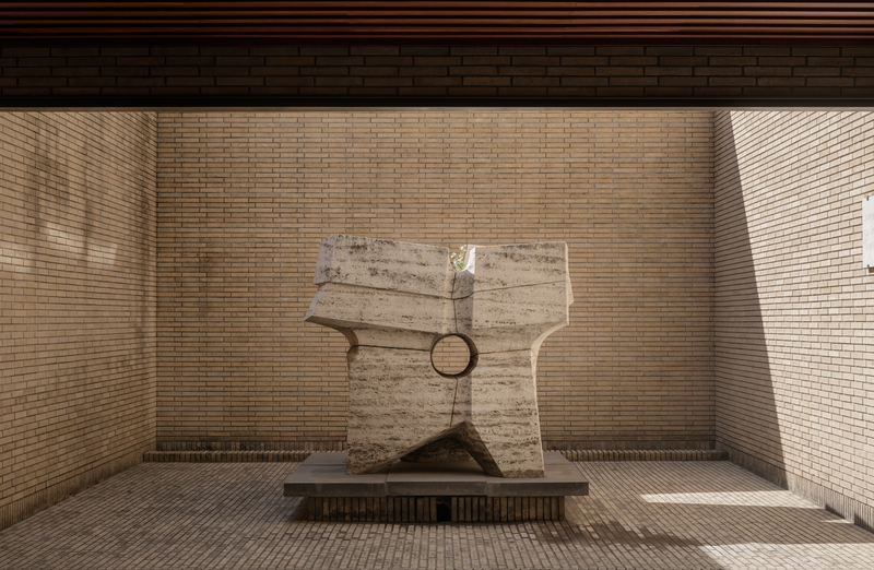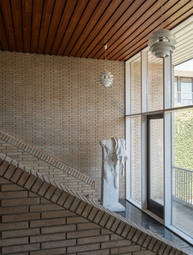 Akademiet er prydet med teaktræ, som ses i gulve, lofter, døre og møbler. Træets glød er med til at skabe en afdæmpet atmosfære, hvilket giver instituttet en følelse af hjemlighed. En kubisk skulptur af Søren Georg Jensen (1917-1982), søn af den berømte sølvsmed Georg Jensen, fanger sollyset fra sin position i midten af ​​atriet.