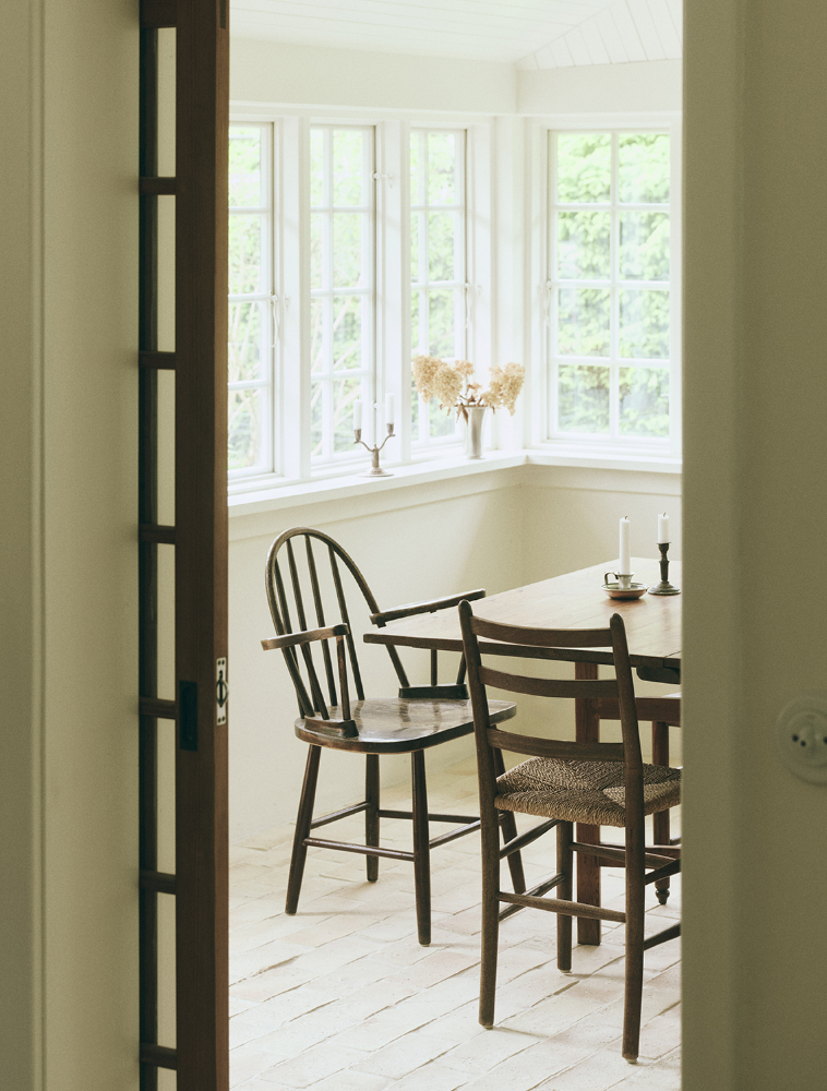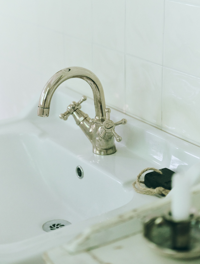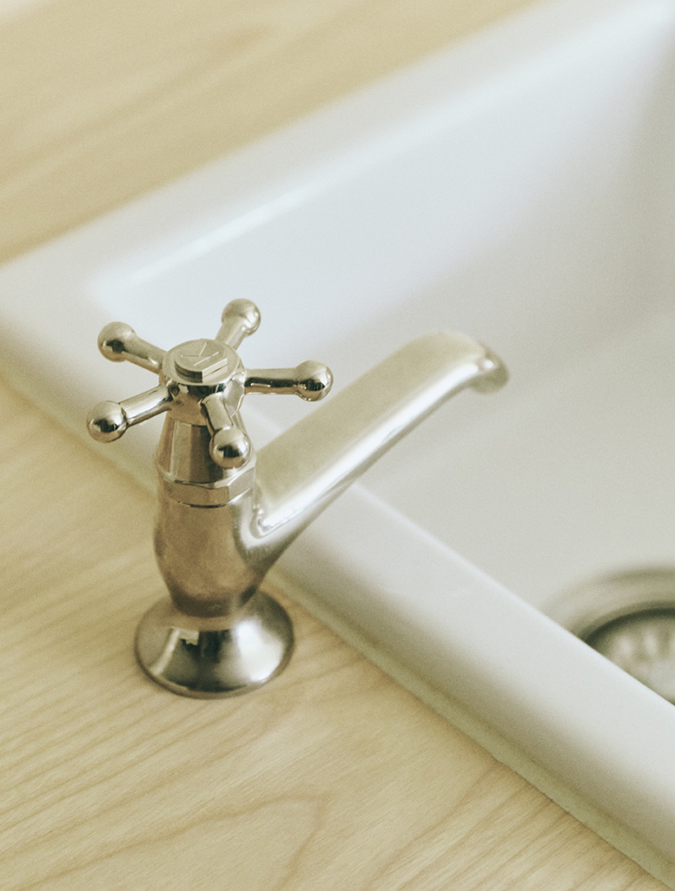 Christiansborg-armaturerne i nikkel indgår som en naturlig del af helheden. Serien blev oprindeligt udviklet i 1918 til restaureringen af Christiansborg Slot og viderefører en dansk designarv, hvor funktion og æstetik går hånd i hånd. Armaturernes klassiske formsprog og diskrete udtryk understøtter husets materialitet og arkitektur uden at dominere rummet. Anvendt både i køkken og bad binder de rummene sammen med et gennemgående, roligt greb om funktion og håndværk.